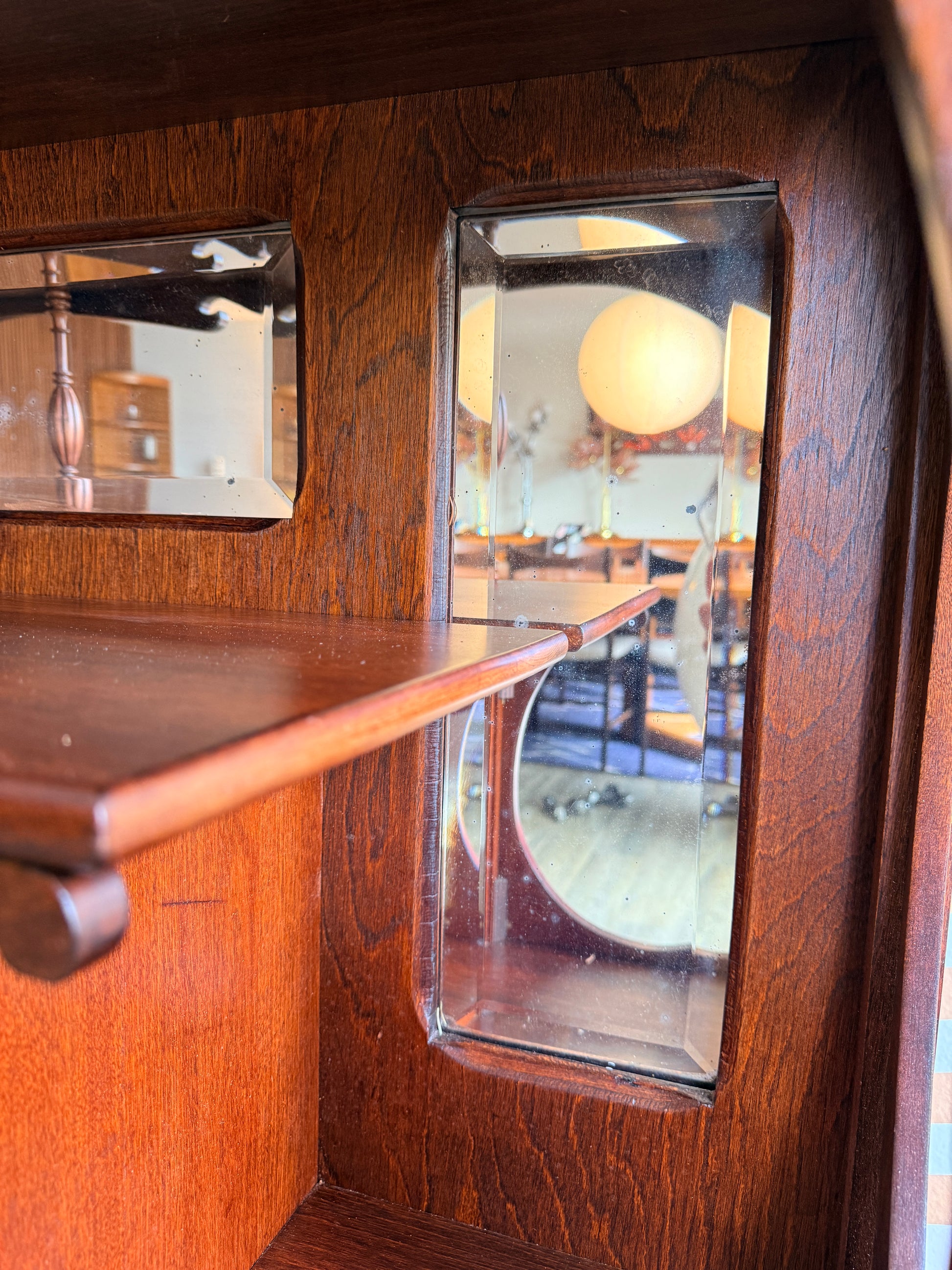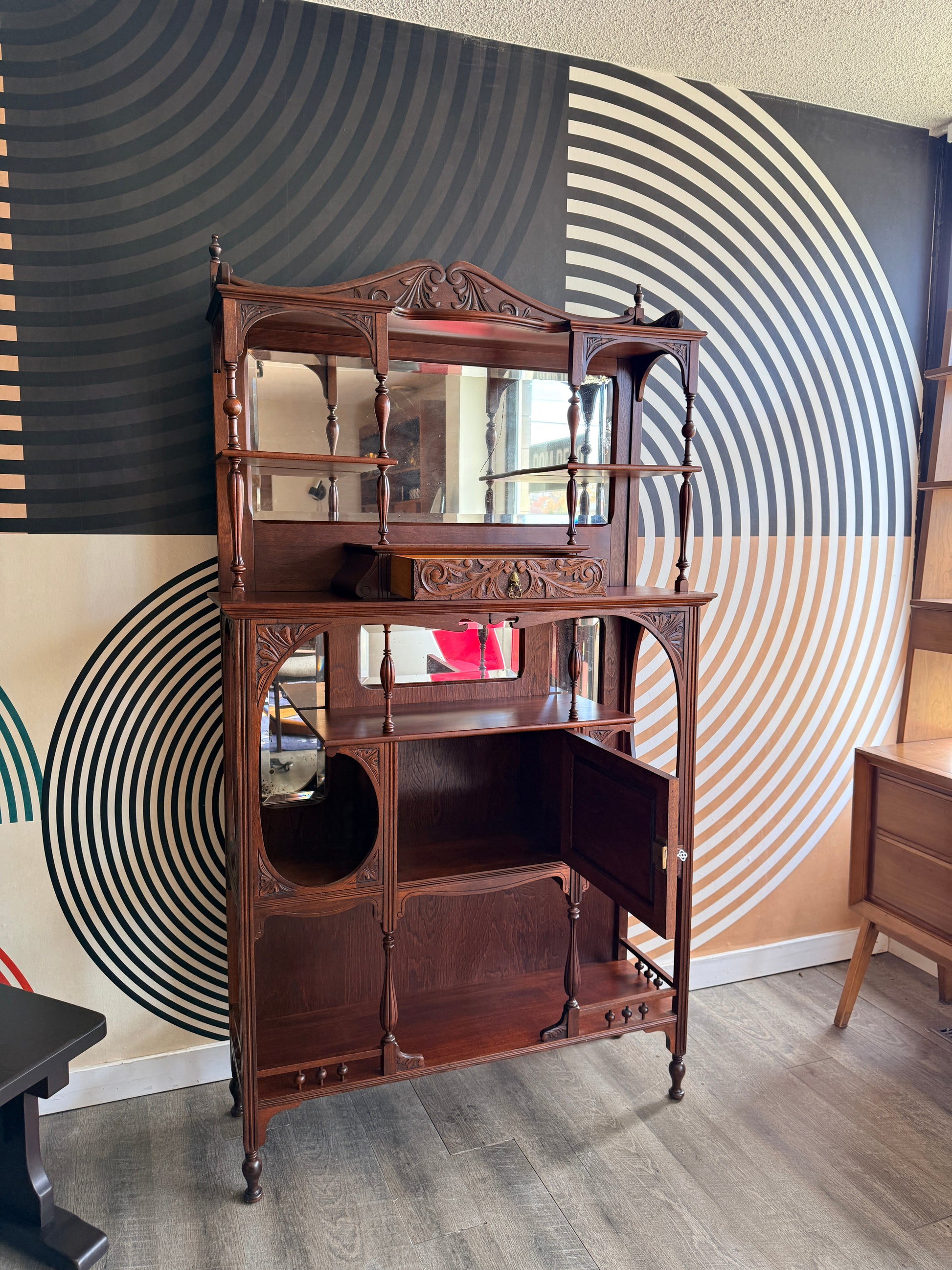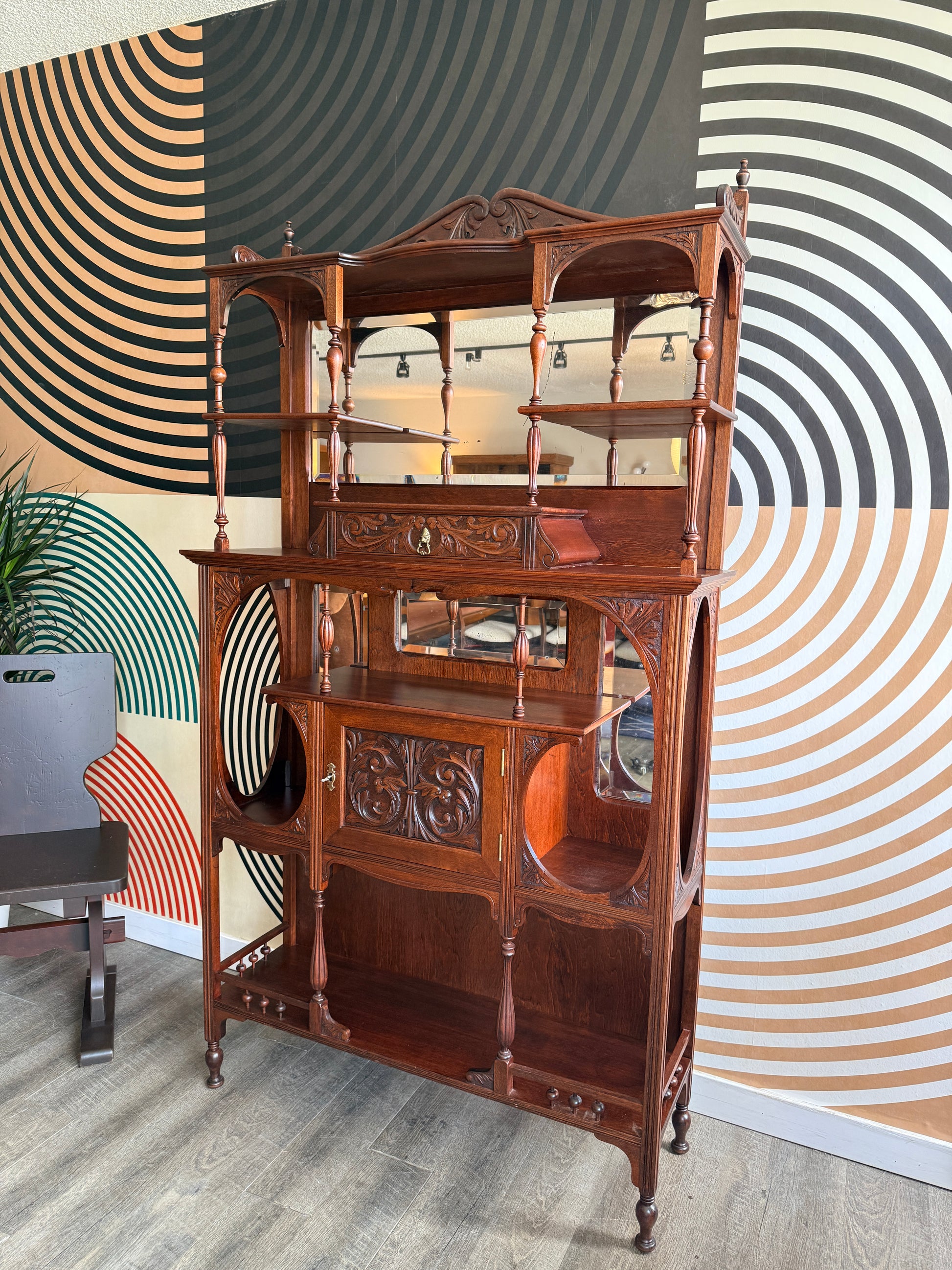 Antique Art Nouveau Mahogany Etagere with Beveled Mirror