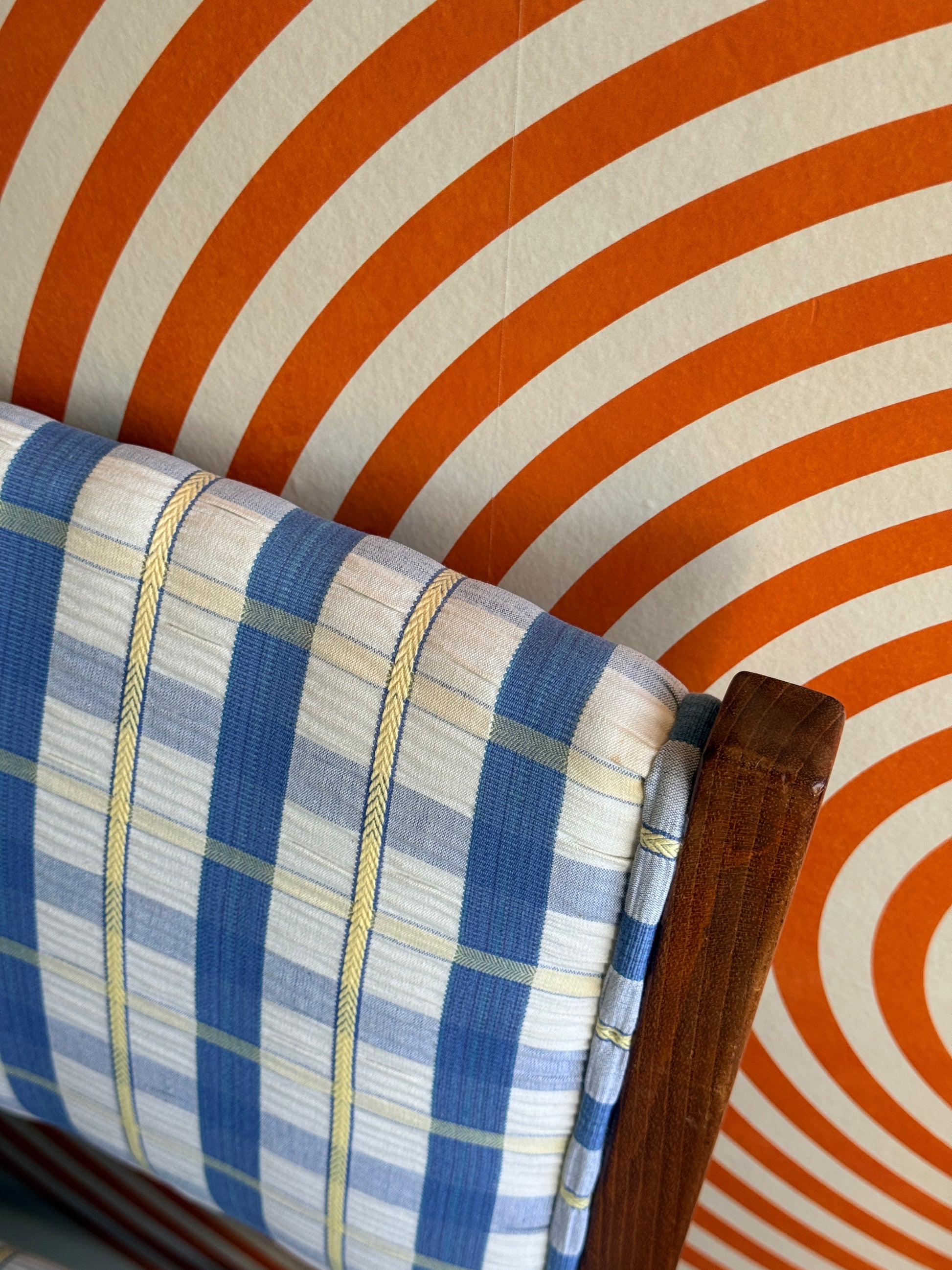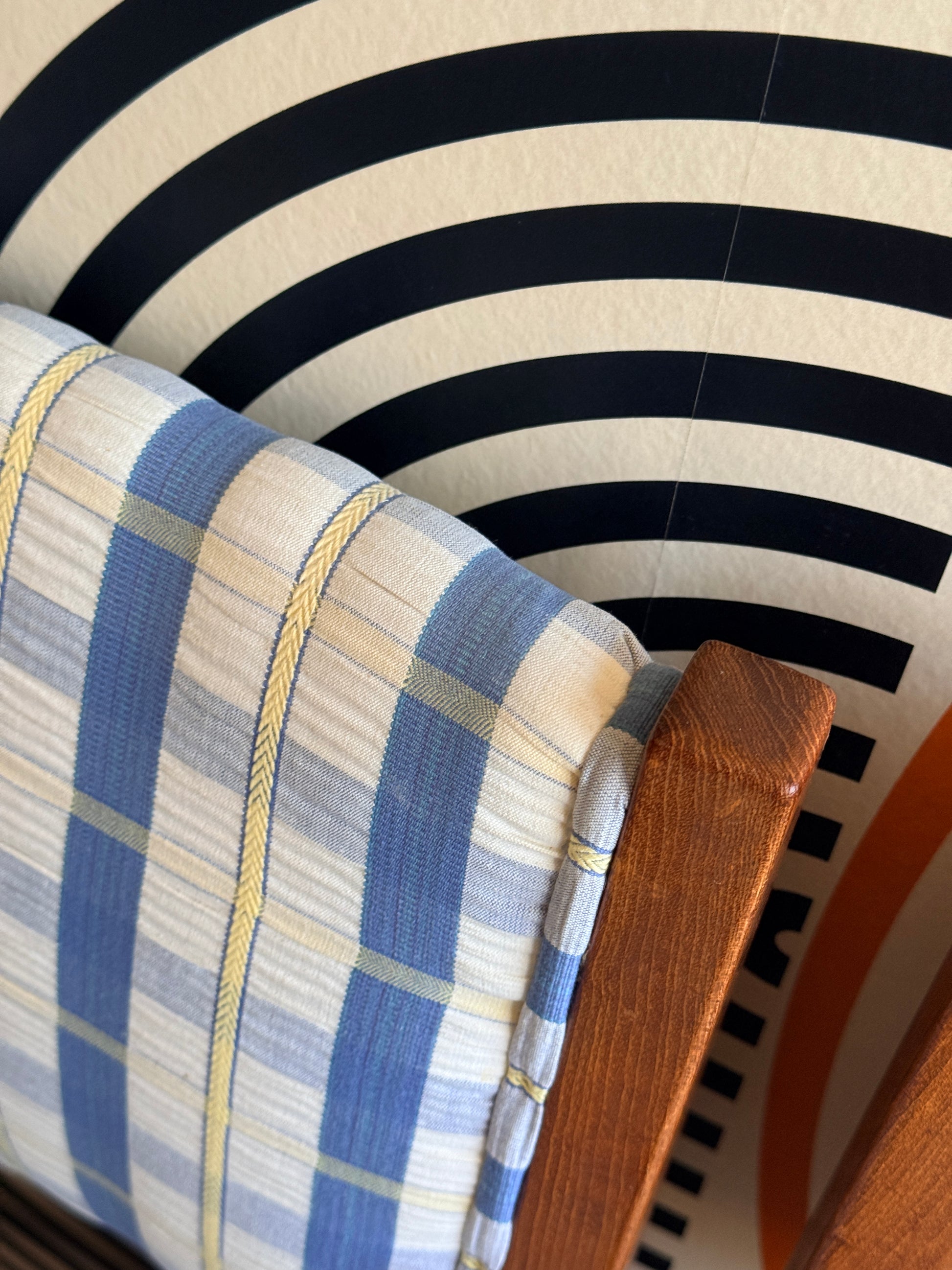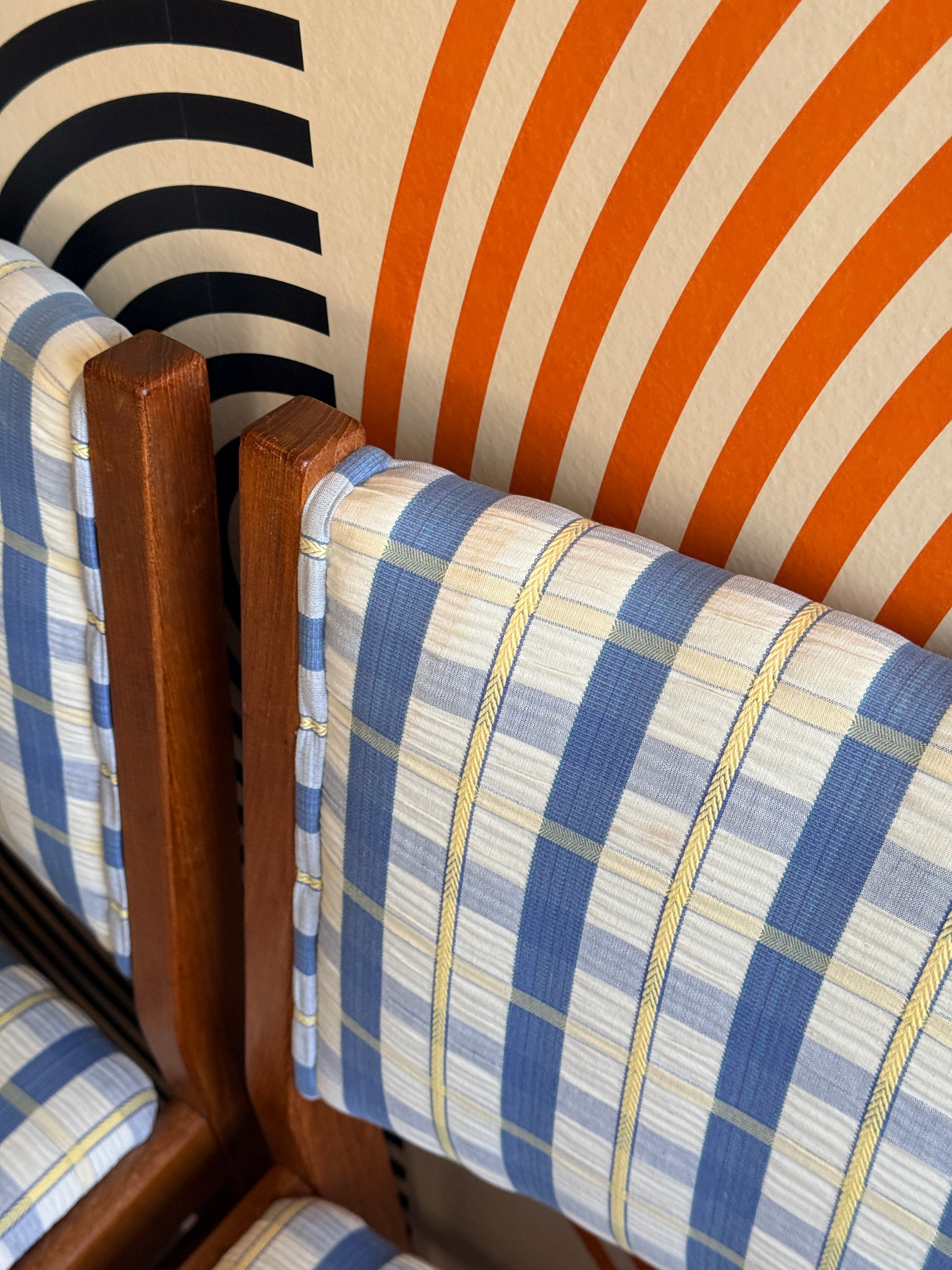 These teak dining chairs are all in good condition and sturdy. However, some chairs have stains on the upholstery, as shown in the photos.
